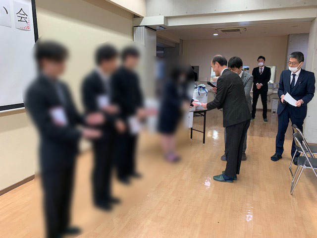 令和7年3月9日、古処学園 卒園式に出席し、卒園生6名の生徒様に直接お祝金を贈呈致しました。<未来への礎参加者>